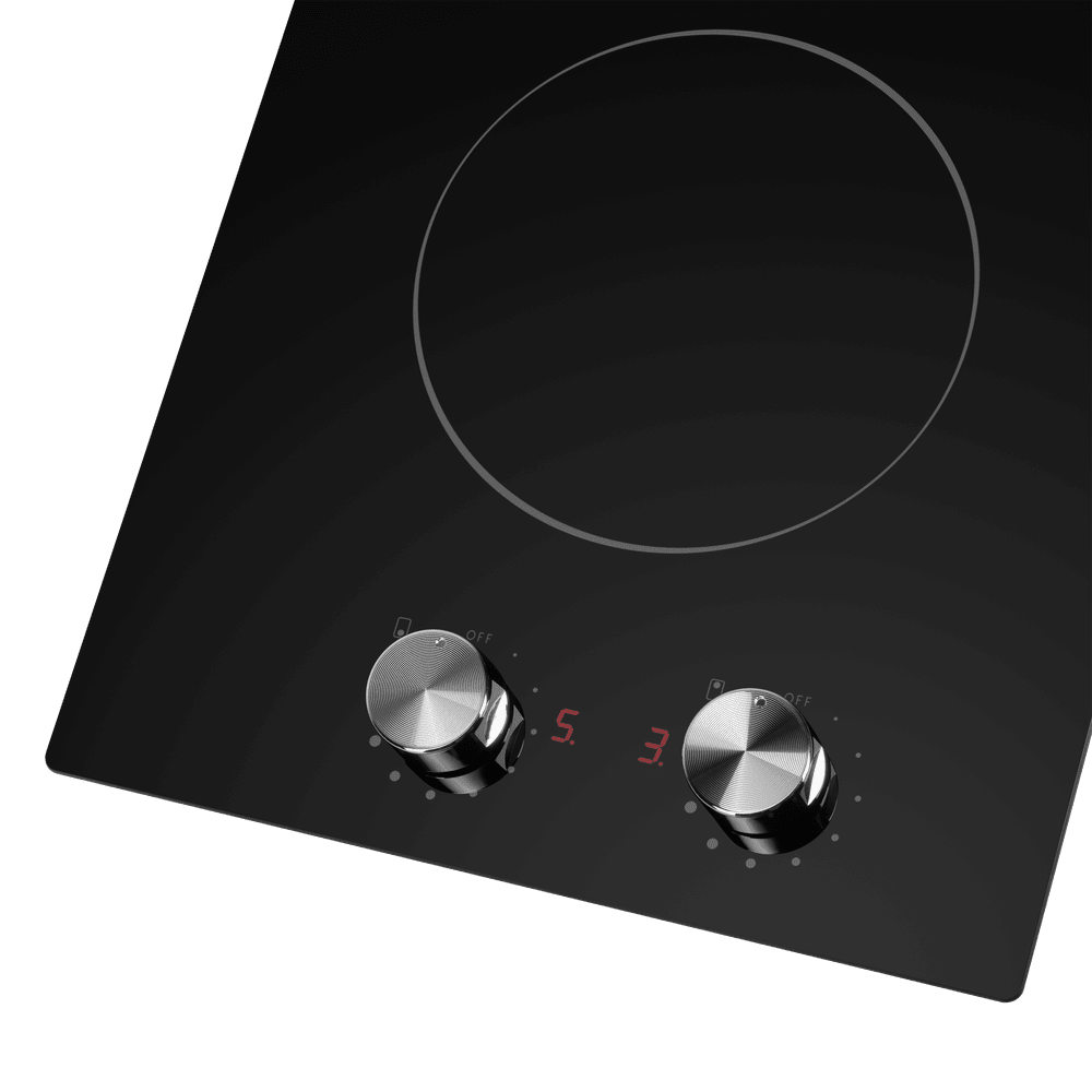 Двухконфорочные панели шириной около 30 см часто можно комбинировать с другими в дизайне «Домино». Такие панели нередко выбирают покупатели, которые пользуются для приготовления пищи другой техникой — мультиварками, духовками, СВЧ-печами. Конфорки при этом могут располагаться как в два ряда, так и в один, а форма панели может быть как привычной прямоугольной, так и овальной или в виде капли.