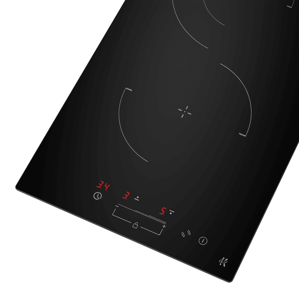 Двухконфорочные панели шириной около 30 см часто можно комбинировать с другими в дизайне «Домино». Такие панели нередко выбирают покупатели, которые пользуются для приготовления пищи другой техникой — мультиварками, духовками, СВЧ-печами. Конфорки при этом могут располагаться как в два ряда, так и в один, а форма панели может быть как привычной прямоугольной, так и овальной или в виде капли.