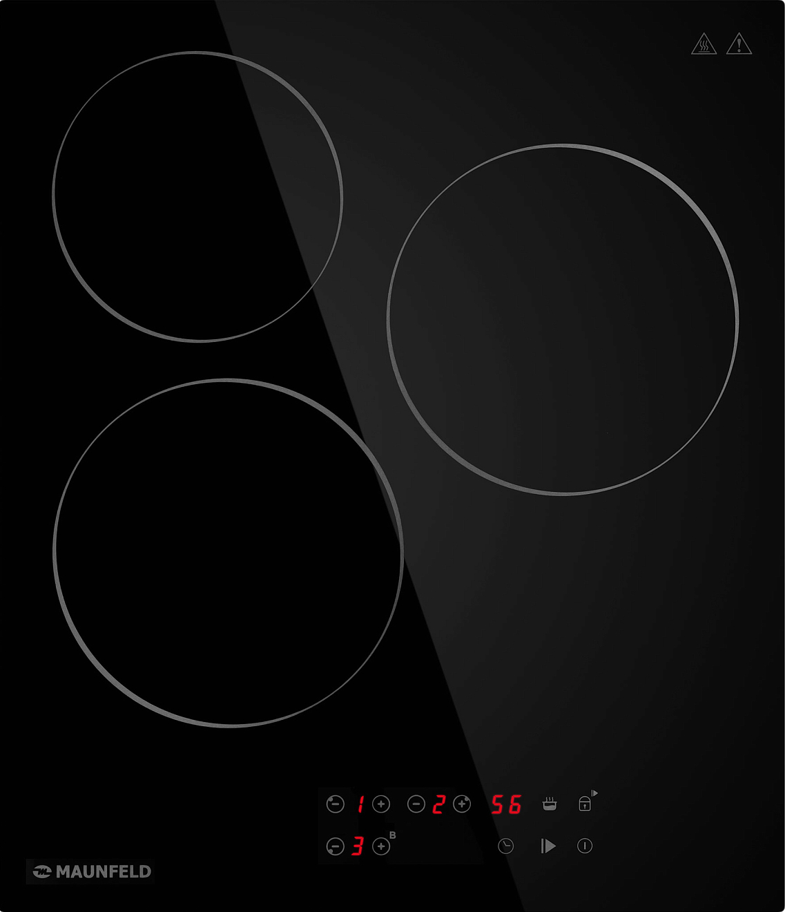 Данная варочная панель имеет классический электрический нагрев, при котором сначала раскаляются конфорки (точнее элементы, скрытые под поверхностью), а затем передают это тепло посуде. Разобраться, как с ней работать, просто даже пожилым людям, привыкшим к плитам. Количество конфорок в этой модели: 3.