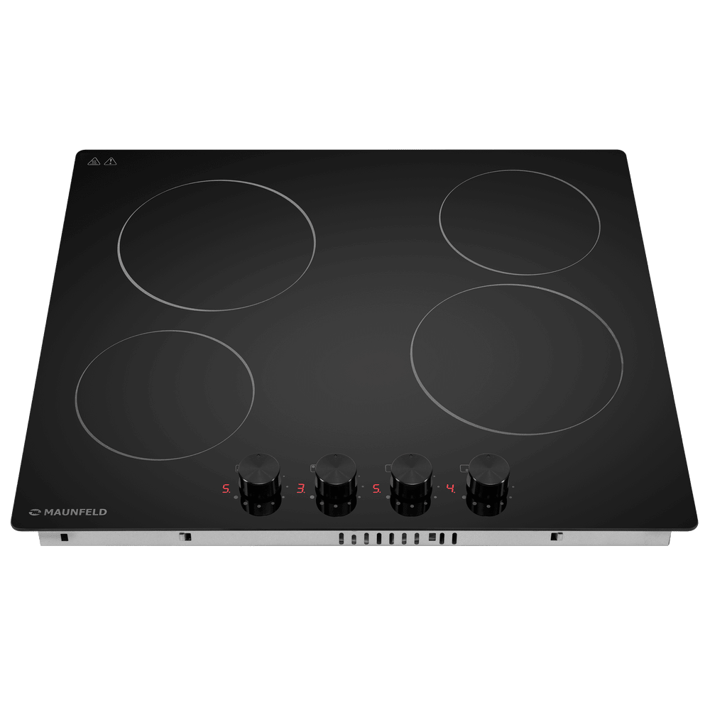 Данная варочная панель имеет классический электрический нагрев, при котором сначала раскаляются конфорки (точнее элементы, скрытые под поверхностью), а затем передают это тепло посуде. Разобраться, как с ней работать, просто даже пожилым людям, привыкшим к плитам. Количество конфорок в этой модели: 4.