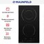 Maunfeld EVCE.292F.D-BK — недорогая и компактная электрическая варочная панель шириной 30 см с независимым подключением и двумя зонами нагрева. Поверхность изготовлена из высококачественной стеклокерамики Vitro Ceramic Glass черного цвета, которая отличается прочностью, легкостью в очистке, возможностью выдерживать посуду любого веса, в том числе массивные чугунные формы и жаровни. Конфорки Hi-light обеспечивают нагрев всего за 5–10 секунд. Гладкую поверхность без выступов можно протереть одним движением, а для более серьезных загрязнений воспользоваться специальными скребками и средствами для ухода за стеклокерамикой.