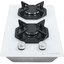 Газовая варочная панель MAUNFELD EGHG.32.2CW/G отличается необычным современным дизайном и компактными размерами. Поверхность сделана из прочного закаленного стекла белого цвета. Управление осуществляется с помощью двух поворотных регуляторов из серебристой стали, оснащенных электроподжигом.