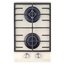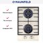 Модель выполнена из белого жаропрочного закаленного стекла, укомплектована двумя газовыми горелками SABAF и чугунными решетками Маунфилд, а также полнотелыми цельнометаллическими ручками механического управления.