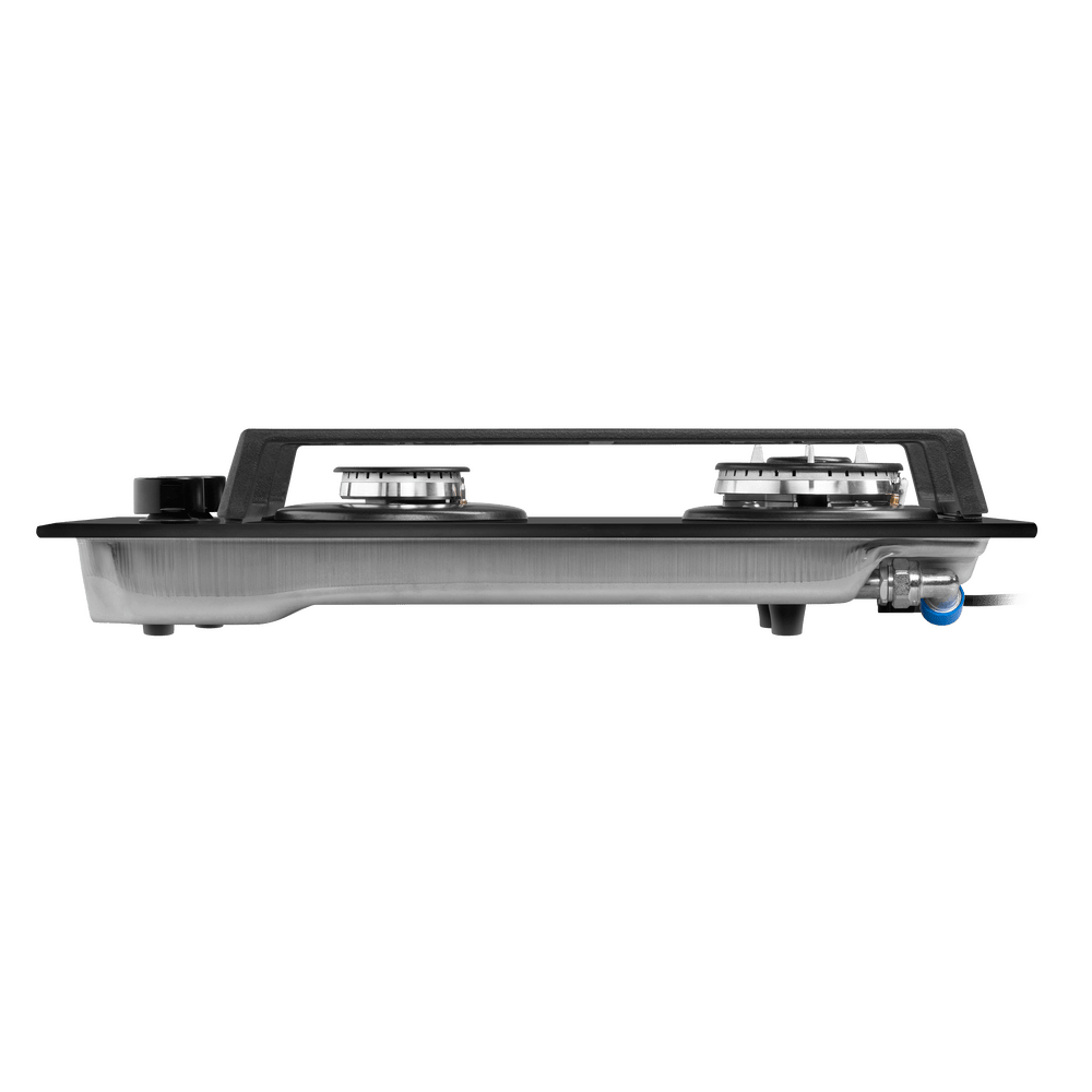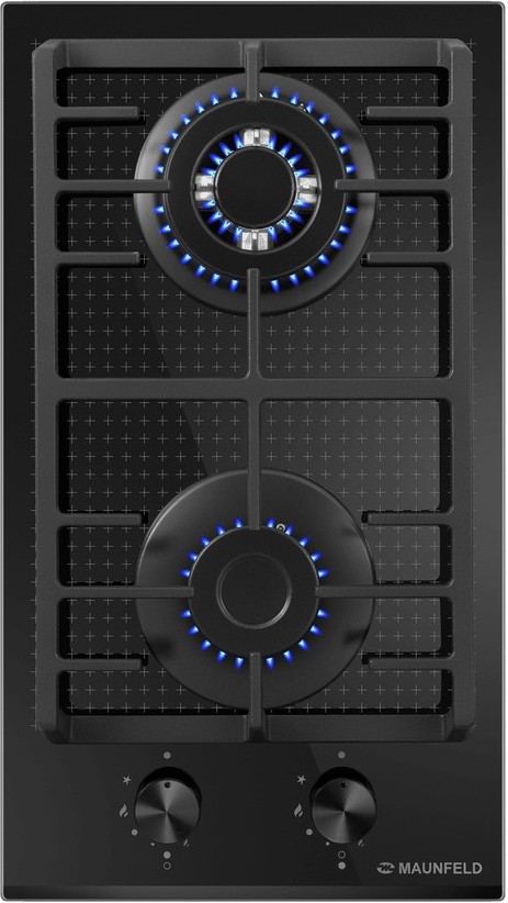 Выбор газовой варочной панели чаще всего обусловлен тем, что в частный дом или квартиру проведен именно газ в качестве обогрева. Работать с этой моделью довольно просто, так как мощность нагрева видна невооруженным взглядом — по силе огня в горелке. Количество конфорок в этой модели: 2.