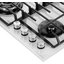 Цвет — белый. Благодаря отсутствию рамки она отлично впишется в интерьер и не займет лишнее место на столешнице, которое можно использовать для работы. Открытый огонь не страшен ни вашей посуде, ни вам, так как горелки надежно закрыты решетками. Материал самой поверхности: закаленное стекло. Управление этой моделью механическое. Для переключения уровней нагрева, выбора функций используются следующие переключатели: поворотные. Простая система контроля за прибором делают его более универсальным, ведь разобраться сможет кто угодно.