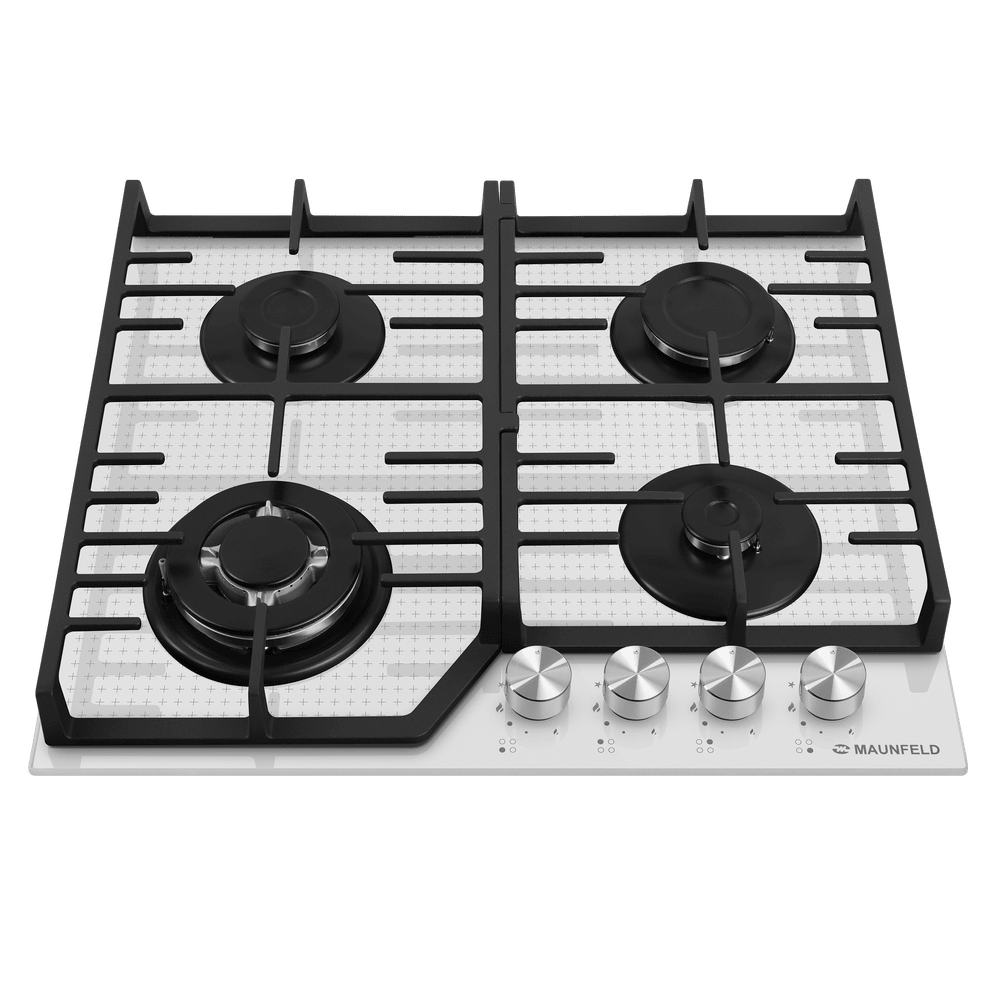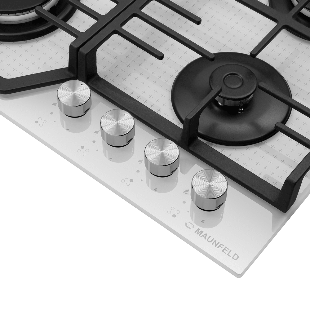 Выбор газовой варочной панели чаще всего обусловлен тем, что в частный дом или квартиру проведен именно газ в качестве обогрева. Работать с этой моделью довольно просто, так как мощность нагрева видна невооруженным взглядом — по силе огня в горелке. Количество конфорок в этой модели: 4.