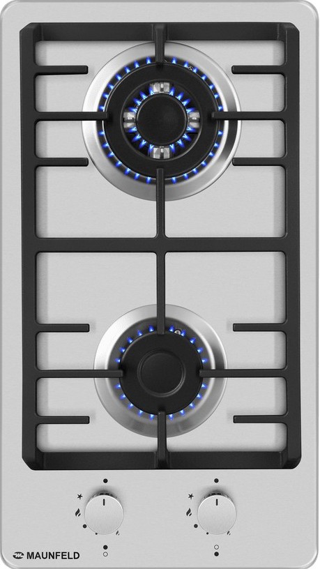 Выбор газовой варочной панели чаще всего обусловлен тем, что в частный дом или квартиру проведен именно газ в качестве обогрева. Работать с этой моделью довольно просто, так как мощность нагрева видна невооруженным взглядом — по силе огня в горелке. Количество конфорок в этой модели: 2.