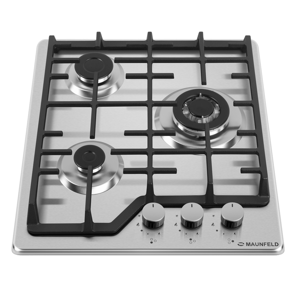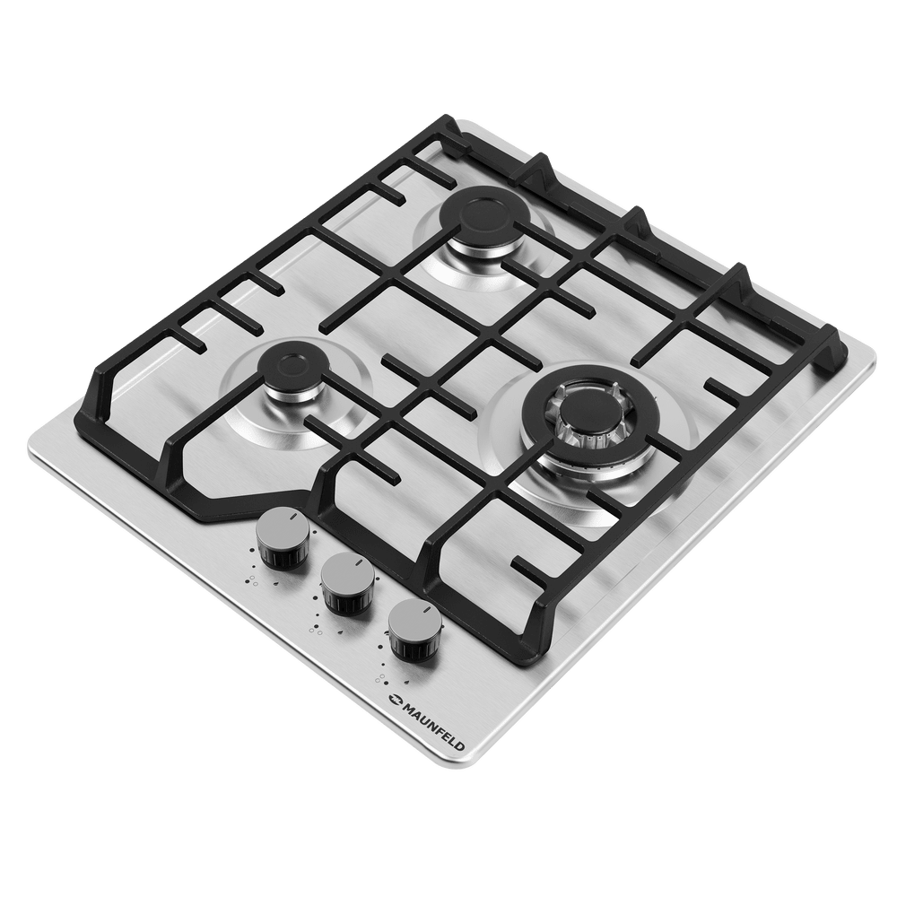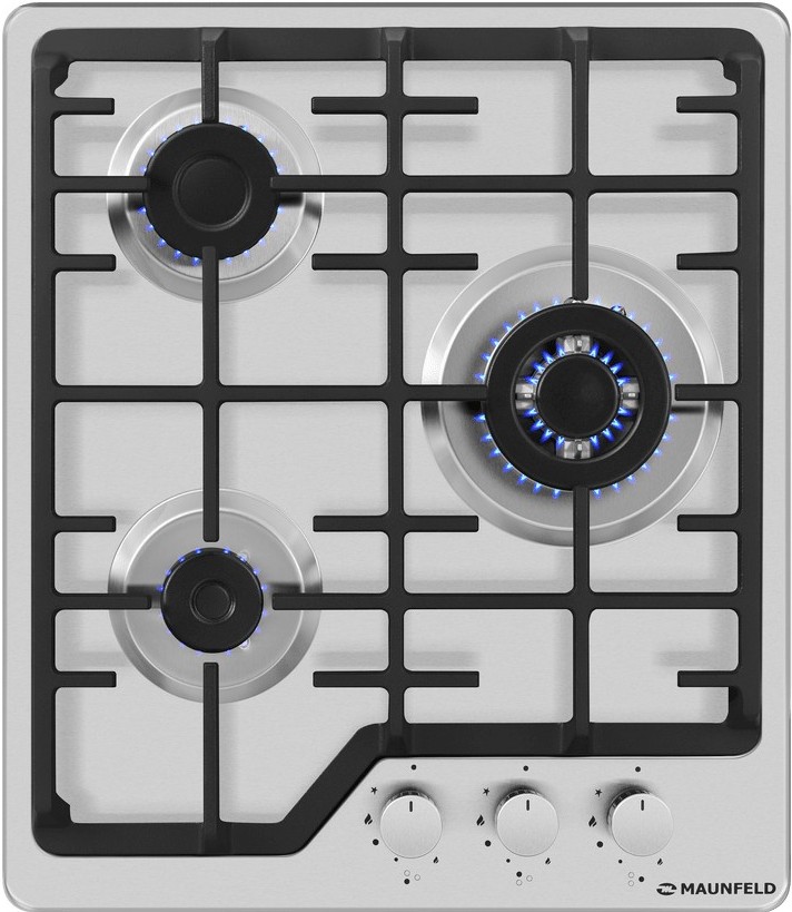 Выбор газовой варочной панели чаще всего обусловлен тем, что в частный дом или квартиру проведен именно газ в качестве обогрева. Работать с этой моделью довольно просто, так как мощность нагрева видна невооруженным взглядом — по силе огня в горелке. Количество конфорок в этой модели: 3.