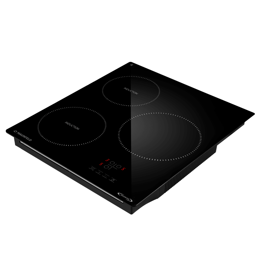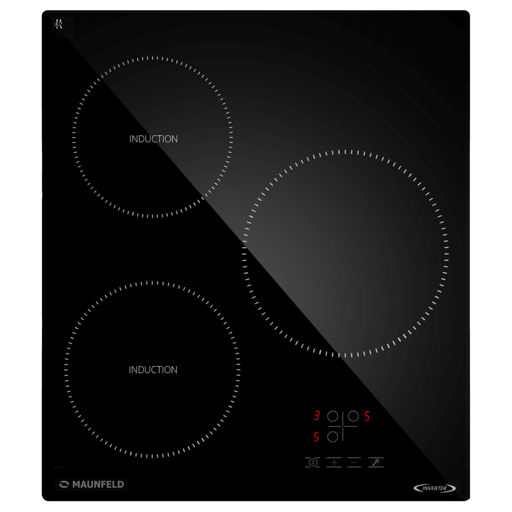 Варочная панель работает на индукционном нагреве — это значит, что повышается температура непосредственно посуды, в которой готовится блюдо. Таким образом промежуточная ступень с предварительным нагревом конфорки пропускается — сокращается время, повышается безопасность. Количество конфорок в этой модели: 3.