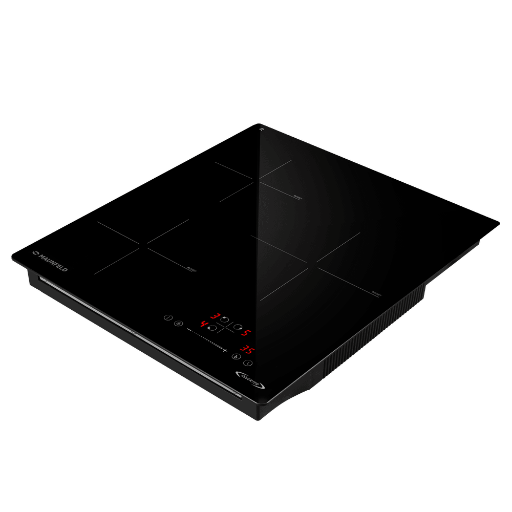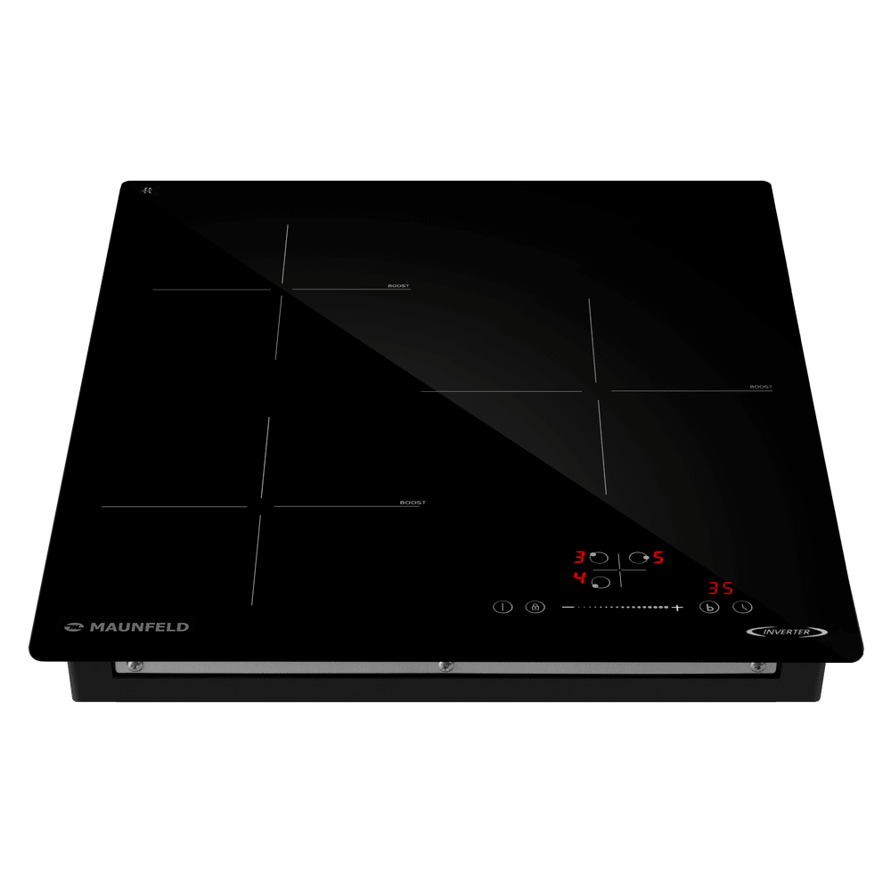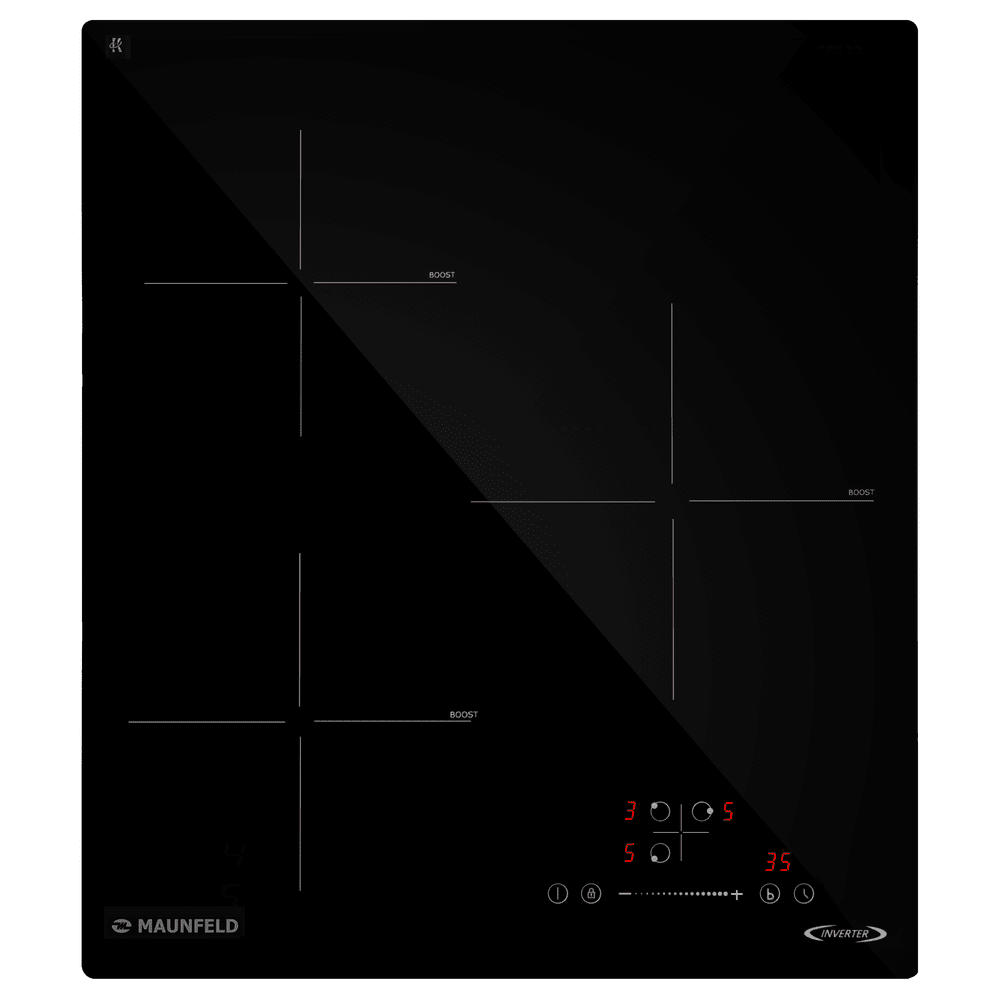 Варочная панель работает на индукционном нагреве — это значит, что повышается температура непосредственно посуды, в которой готовится блюдо. Таким образом промежуточная ступень с предварительным нагревом конфорки пропускается — сокращается время, повышается безопасность. Количество конфорок в этой модели: 3.