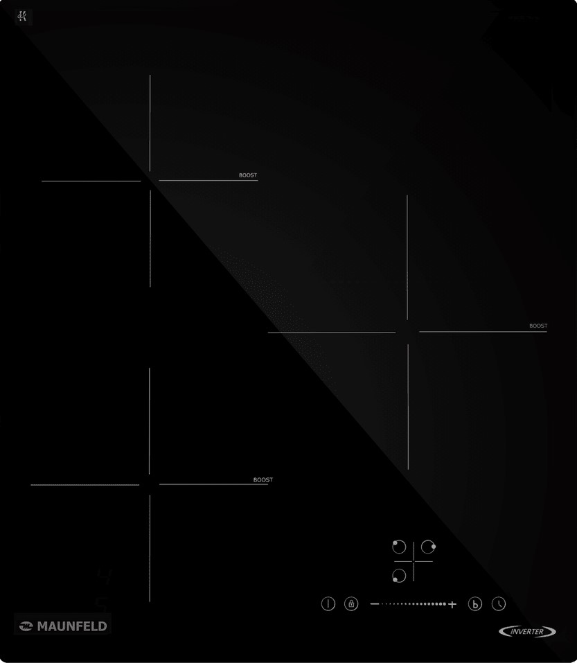 Функция интенсивного нагрева. Мощность зоны нагрева значительно увеличивается на определенный промежуток времени, обеспечивая максимальную скорость нагрева.