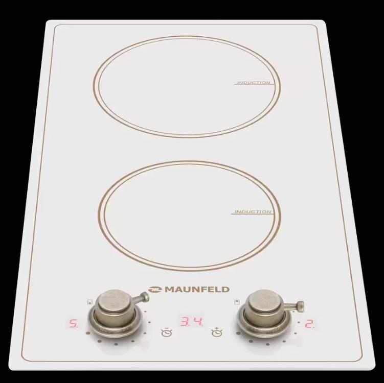 Варочная панель работает на индукционном нагреве — это значит, что повышается температура непосредственно посуды, в которой готовится блюдо. Таким образом промежуточная ступень с предварительным нагревом конфорки пропускается — сокращается время, повышается безопасность. Количество конфорок в этой модели: 2.