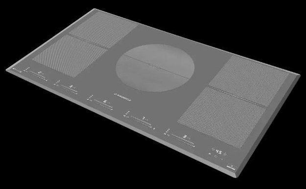 Варочная панель работает на индукционном нагреве — это значит, что повышается температура непосредственно посуды, в которой готовится блюдо. Таким образом промежуточная ступень с предварительным нагревом конфорки пропускается — сокращается время, повышается безопасность. Количество конфорок в этой модели: 5.