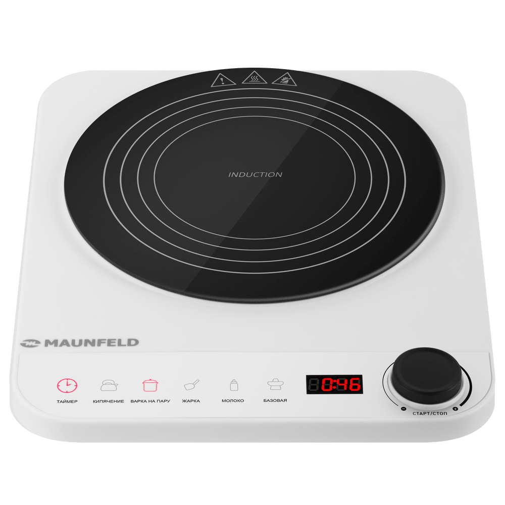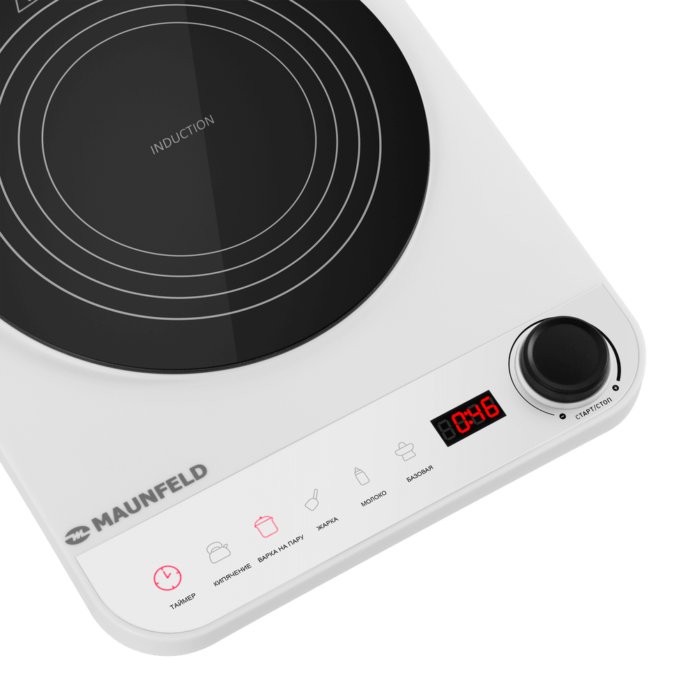 Варочная панель работает на индукционном нагреве — это значит, что повышается температура непосредственно посуды, в которой готовится блюдо. Таким образом промежуточная ступень с предварительным нагревом конфорки пропускается — сокращается время, повышается безопасность. Количество конфорок в этой модели: 1.