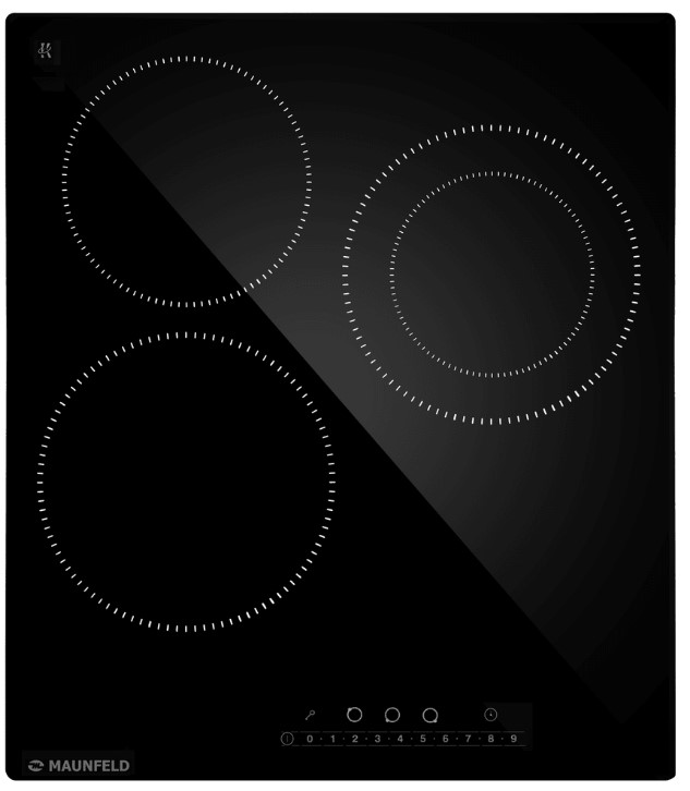 Данная варочная панель имеет классический электрический нагрев, при котором сначала раскаляются конфорки (точнее элементы, скрытые под поверхностью), а затем передают это тепло посуде. Разобраться, как с ней работать, просто даже пожилым людям, привыкшим к плитам. Количество конфорок в этой модели: 3.