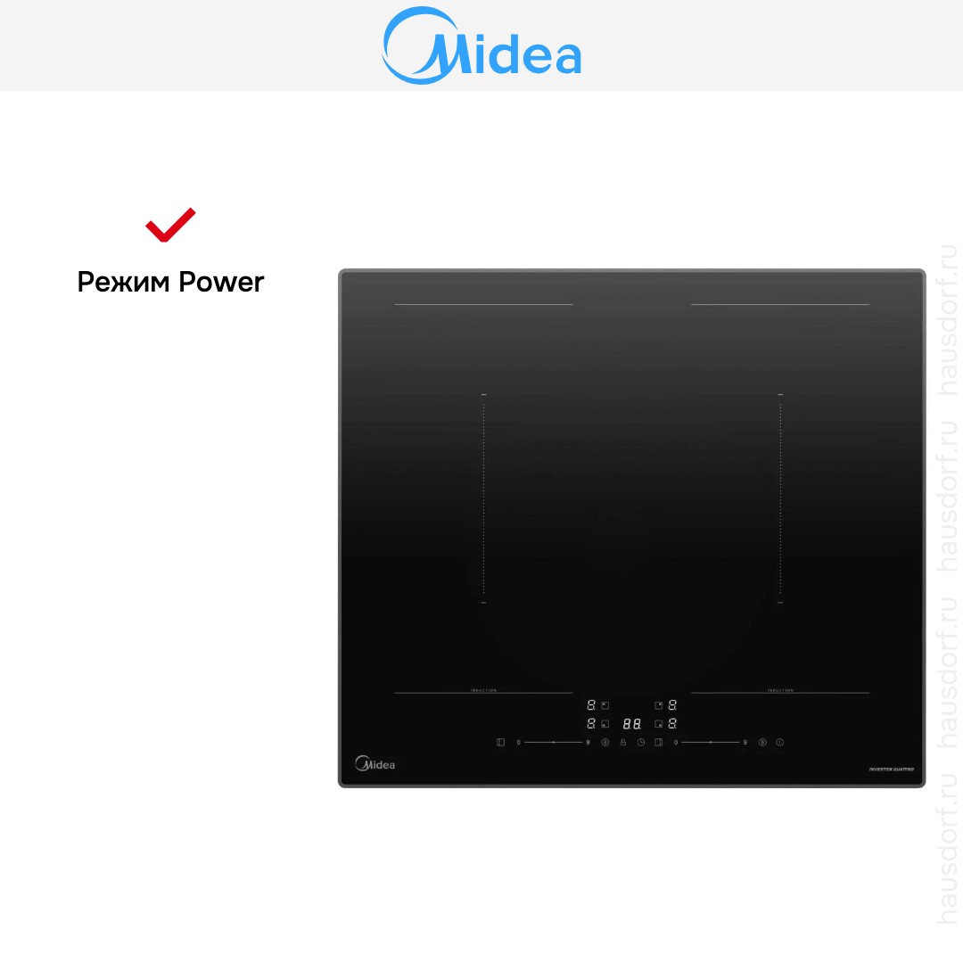 Функция интенсивного нагрева. Мощность зоны нагрева значительно увеличивается на определенный промежуток времени, обеспечивая максимальную скорость нагрева.