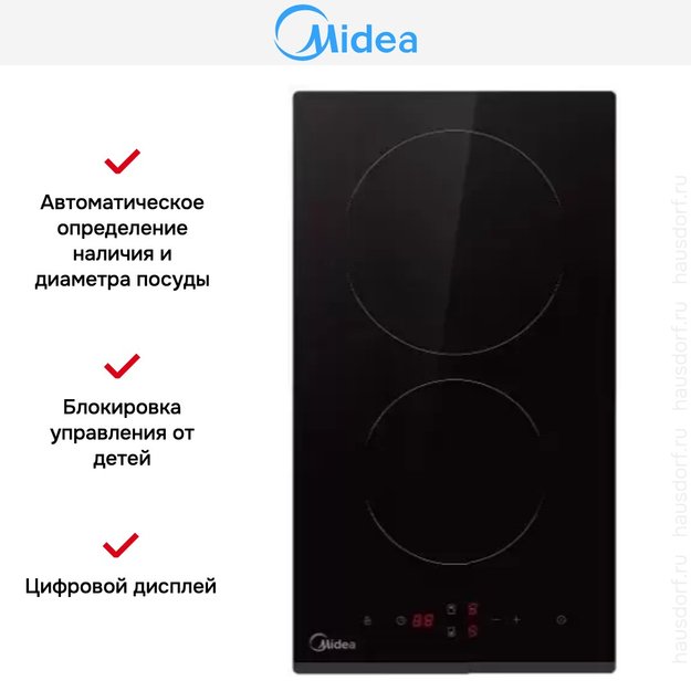 Зоны нагрева в модели Midea стандартные, нет дополнительных особенностей.