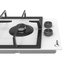 Цвет — белый. Открытый огонь не страшен ни вашей посуде, ни вам, так как горелки надежно закрыты решетками. Материал самой поверхности: закаленное стекло. Управление этой моделью механическое. Для переключения уровней нагрева, выбора функций используются следующие переключатели: поворотные. Простая система контроля за прибором делают его более универсальным, ведь разобраться сможет кто угодно.