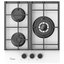 Выбор газовой варочной панели чаще всего обусловлен тем, что в частный дом или квартиру проведен именно газ в качестве обогрева. Работать с этой моделью довольно просто, так как мощность нагрева видна невооруженным взглядом — по силе огня в горелке. Количество конфорок в этой модели: 3.