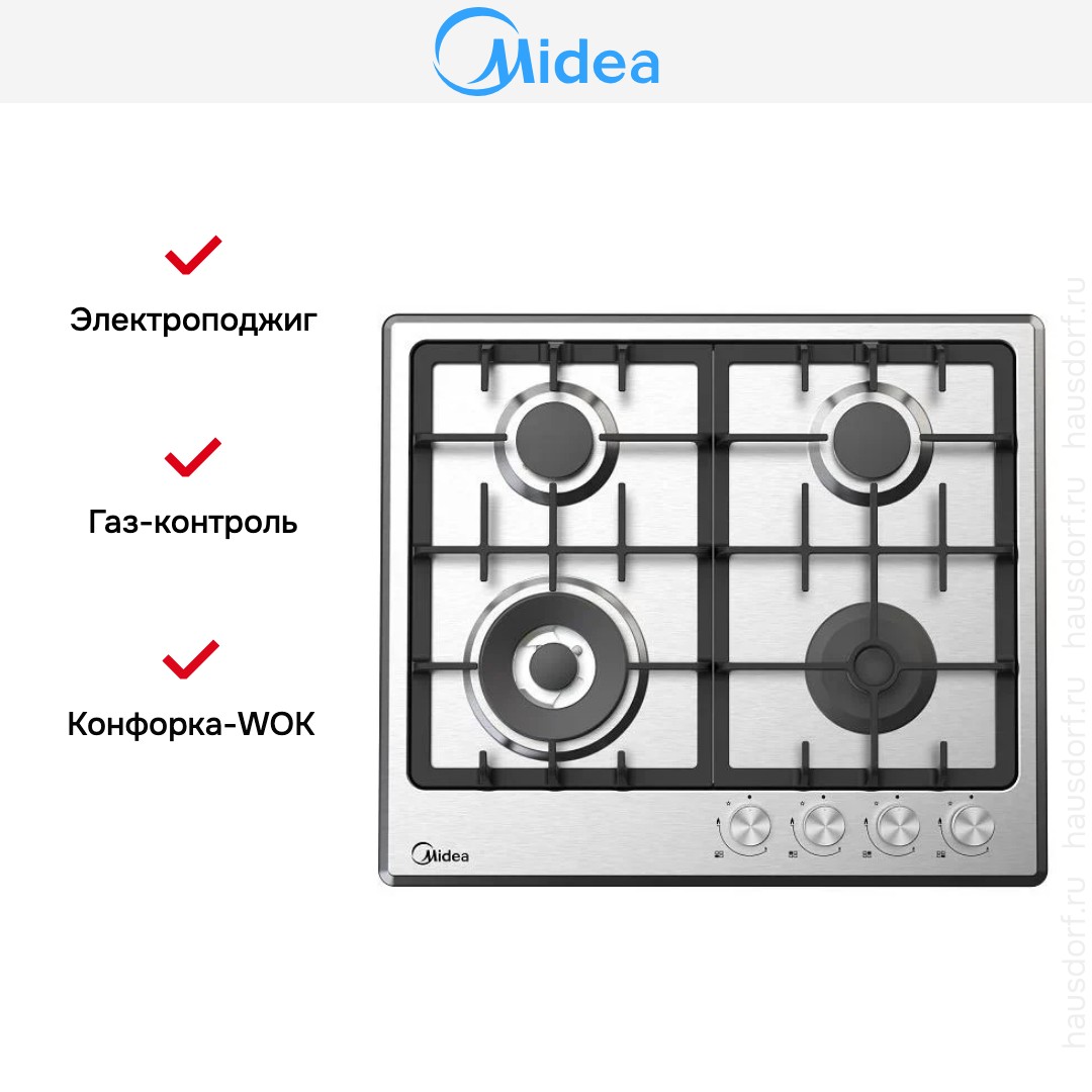 Выбор газовой варочной панели чаще всего обусловлен тем, что в частный дом или квартиру проведен именно газ в качестве обогрева. Работать с этой моделью довольно просто, так как мощность нагрева видна невооруженным взглядом — по силе огня в горелке. Количество конфорок в этой модели: 4.