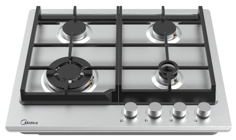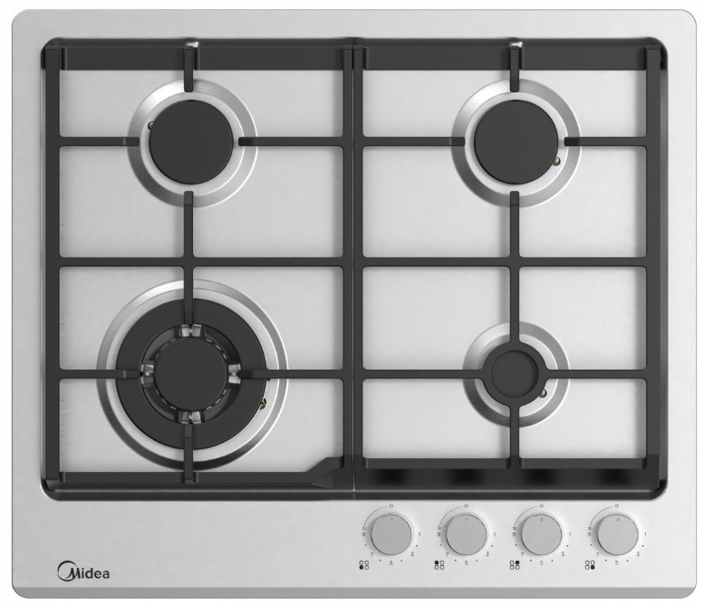 Выбор газовой варочной панели чаще всего обусловлен тем, что в частный дом или квартиру проведен именно газ в качестве обогрева. Работать с этой моделью довольно просто, так как мощность нагрева видна невооруженным взглядом — по силе огня в горелке. Количество конфорок в этой модели: 4.