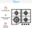 Варочная панель Midea MG697TGW — стильная и функциональная газовая модель, выполненная в свежем белом цвете и с безрамочным дизайном, который придаёт поверхности лёгкость и современный вид. Серая фурнитура создаёт изысканный контраст, подчёркивая элегантность и сдержанность оформления.