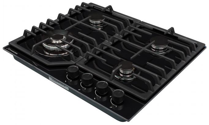 Выбор газовой варочной панели чаще всего обусловлен тем, что в частный дом или квартиру проведен именно газ в качестве обогрева. Работать с этой моделью довольно просто, так как мощность нагрева видна невооруженным взглядом — по силе огня в горелке. Количество конфорок в этой модели: 4.