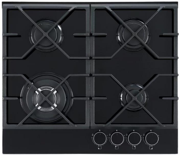 Цвет — черный. Благодаря отсутствию рамки она отлично впишется в интерьер и не займет лишнее место на столешнице, которое можно использовать для работы. Открытый огонь не страшен ни вашей посуде, ни вам, так как горелки надежно закрыты решетками. Материал самой поверхности: закаленное стекло. Управление этой моделью механическое. Для переключения уровней нагрева, выбора функций используются следующие переключатели: поворотные. Простая система контроля за прибором делают его более универсальным, ведь разобраться сможет кто угодно.