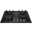 Черная газовая панель с эмалированной поверхностью и поворотными переключателями из нержавеющей стали. Вы можете регулировать мощность конфорок разного диаметра — в вашем распоряжении есть WOK, маленькая экономичная зона нагрева.