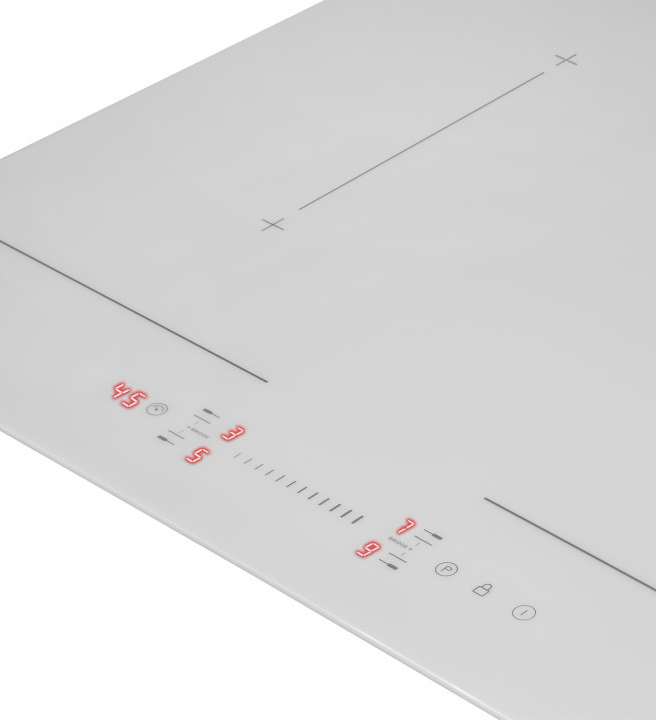 Цвет — белый. Материал самой поверхности: стеклокерамика. Управление этой моделью электронное. Для переключения уровней нагрева, выбора функций используются следующие переключатели: сенсорный слайдер/TouchSlider. Продвинутая система контроля за прибором делают его современным и отвечающим на главные запросы покупателя.