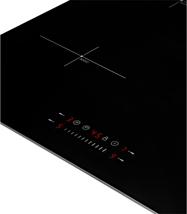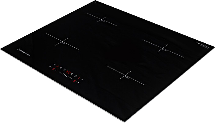 Варочная панель работает на индукционном нагреве — это значит, что повышается температура непосредственно посуды, в которой готовится блюдо. Таким образом промежуточная ступень с предварительным нагревом конфорки пропускается — сокращается время, повышается безопасность. Количество конфорок в этой модели: 4.
