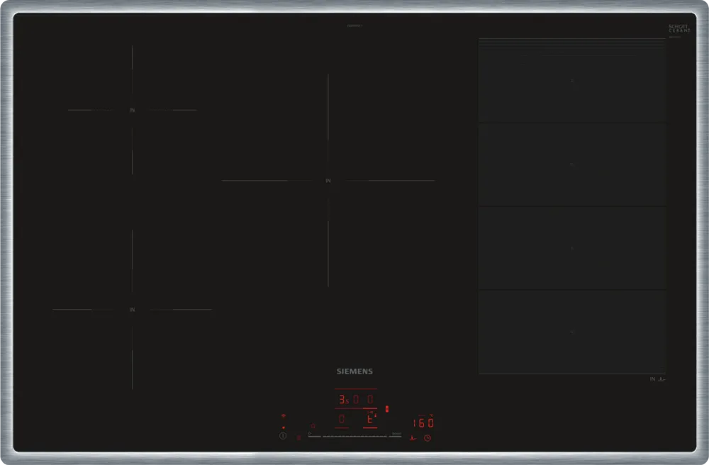 Модель Сименс EX845HVC1E входит в дизайн-линейку: iQ700. Цвет — черный. Благодаря рамке она отделена от рабочей зоны и прочнее закреплена на столешнице. Материал самой поверхности: стеклокерамика. Управление этой моделью электронное. Для переключения уровней нагрева, выбора функций используются следующие переключатели: сенсорные/TouchControl, сенсорный слайдер/TouchSlider. Продвинутая система контроля за прибором делают его современным и отвечающим на главные запросы покупателя.