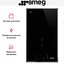 Электрические конфорки типа Hi-light содержат нагревательный элемент в виде тонкой ленты из вольфрама: при пропускании тока эта лента очень быстро нагревается, что обеспечивает быстрое повышение температуры стеклокерамической поверхности. На варочной панели Смег SE232TX1 можно использовать посуду из любых материалов. На черной стеклокерамике нанесены стойкие обозначение центра конфорок. Задняя конфорка мощностью 1700 Вт имеет контур расширения — на ней можно готовить в посуде диаметром от 12 до 18 см. Ближняя конфорка мощностью 1200 вт рассчитана на готовку в посуде диаметром около 14 см. В передней части поверхности располагается сенсорная панель управления. Нажатием сенсоров можно выбирать одну из 9 ступеней регулировки мощности, а также управлять расширением задней конфорки.