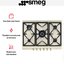 Smeg SRV876POGH — независимая варочная панель с эмалированной рабочей поверхностью кремового цвета. К особенностям модели относится наличие ультрабыстрой конфорки с двойным управлением, при помощи которой можно максимально быстро вскипятить большое количество жидкости или подогреть готовое блюдо.