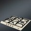 Четыре конфорки располагаются по нестандартной схеме — ромбом. Такая конфигурация на практике является наиболее удобной, так как обеспечивает комфортную расстановку посуды, даже если задействованы все горелки одновременно. Наличие большой зоны нагрева с двумя рядами пламени — одно из достоинств устройства. Она позволяет сократить время приготовления за счет быстрого доведения жидкости до кипения. Кроме того, данную конфорку можно использовать при приготовлении блюд Wok. Производитель советует расширить функционал модели приобретением чугунного гриля.