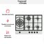 Выбор газовой варочной панели чаще всего обусловлен тем, что в частный дом или квартиру проведен именно газ в качестве обогрева. Работать с этой моделью довольно просто, так как мощность нагрева видна невооруженным взглядом — по силе огня в горелке. Количество конфорок в этой модели: 5.