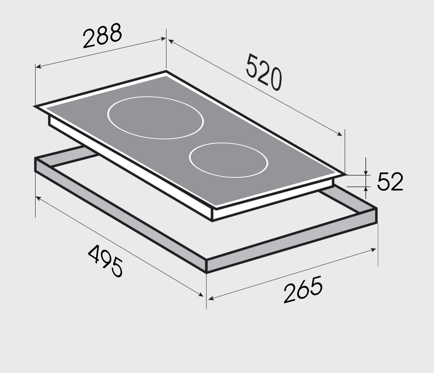 Глубина варочной панели представляет собой расстояние от ближайшей к пользователю ее точки до самой дальней. В первую очередь глубина определяется соответствующими размерами столешницы, куда варочная панель будет встроена, и уже во вторую — количеством и расположением конфорок.