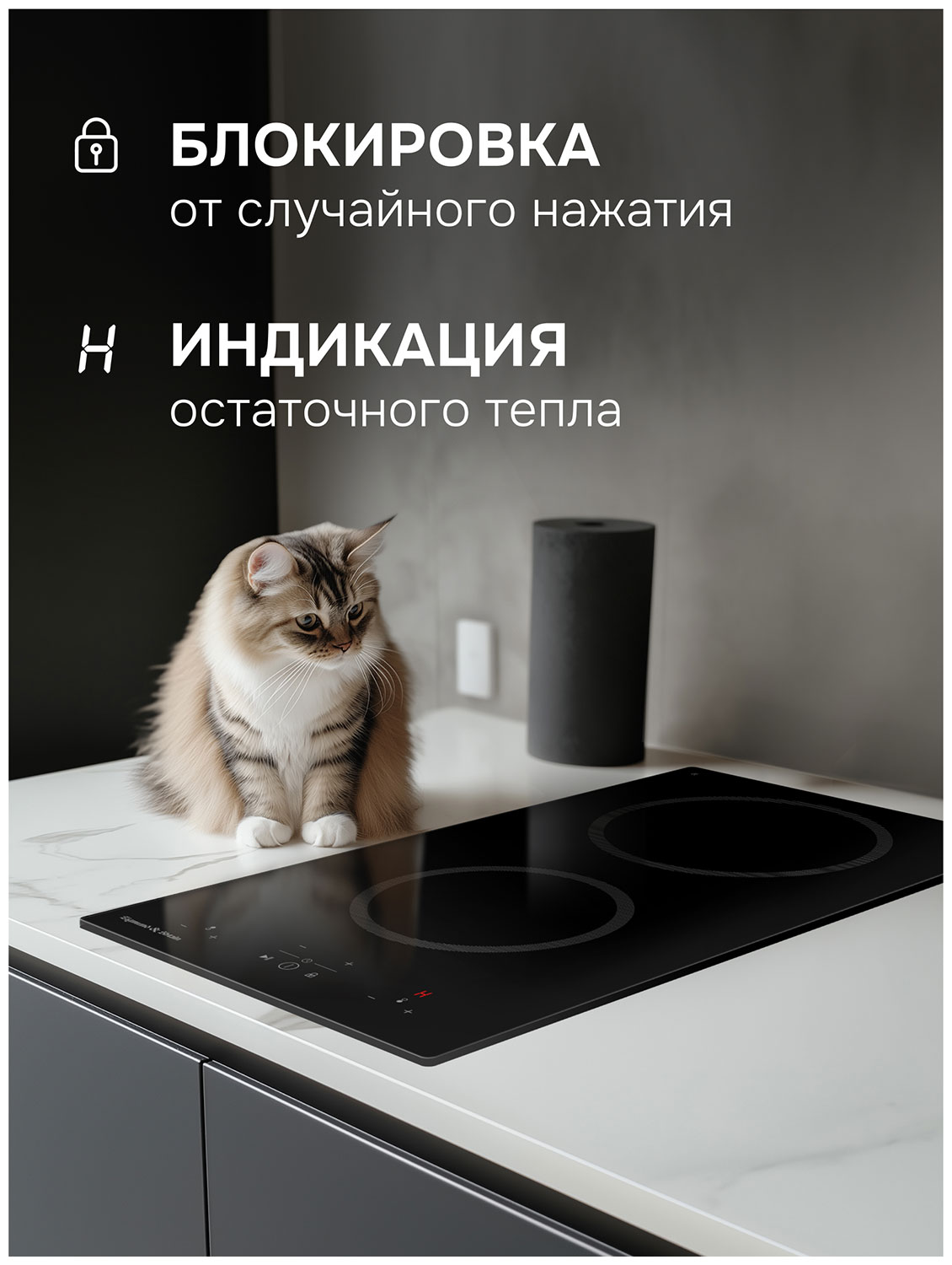 Такой индикатор напомнит, что поверхность ещё горячая, и поэтому не стоит касаться её или ставить на неё предметы, чувствительные к высокой температуре. Кроме этого, он позволяет эффективно использовать остаточное тепло, чтобы сэкономить электроэнергию — можно подогреть уже приготовленное блюдо.