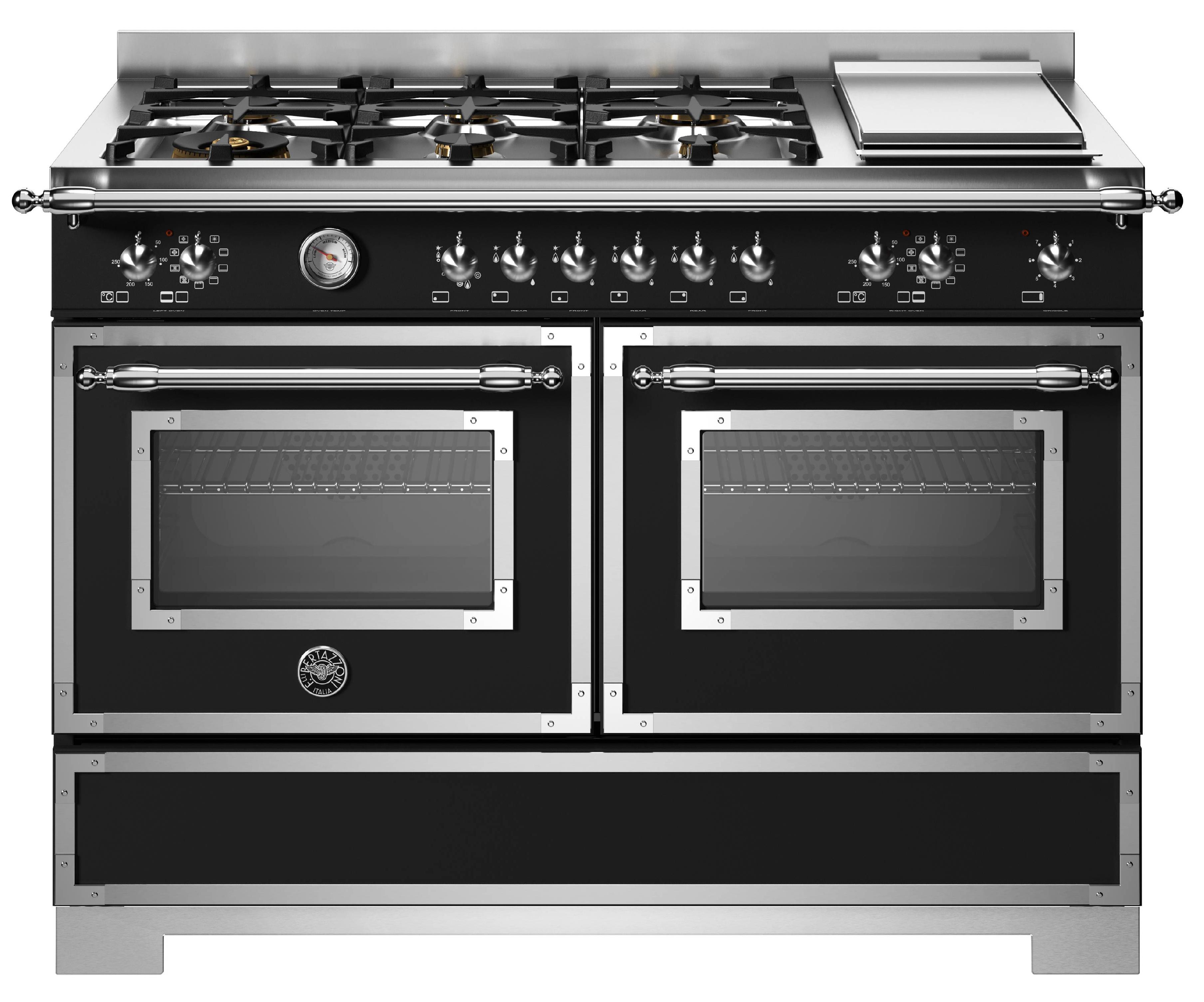 Комбинированная плита Bertazzoni HER126G2ENET2 — отличный выбор как для квартиры, так и для частного дома. Цвет корпуса черный, он гармонично сочетается с мебелью и техникой похожих оттенков, а также может интересно выглядеть на контрасте с ними. Для управления используется удобная и понятная механическая система. Благодаря ей выбирать режимы приготовления и настраивать параметры температуры очень просто. Переключатели не только выполняют техническую функцию, но и поддерживают общий дизайн; тип элементов: поворотные.
