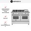 Устройства с тремя духовками также имеют один основной и две дополнительных шкафа разного объема: например, плиты Bertazzoni оснащены большой духовкой объемом 69 литров, средней объемом 54 литра и малой объемом 24 литра. Духовки располагаются в два ряда: две меньшие духовки в одном ряду, большая и ящик для посуды в другом.