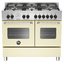 Варочный центр Bertazzoni MAS1006MFEDCRT — отдельно стоящая модель из коллекции Master, включающая газовую варочную поверхность с шестью конфорками и два электрических духовых шкафа объемом 69 и 54 литра. Ширина 100 см позволит разместить устройство в просторном помещении. Модель выполнена в спокойном кремовом цвете, стальная фурнитура позволит установить ее как в классической, так и в современной кухне. На варочной поверхности из нержавеющей стали предусмотрена мощная конфорка WOK с двумя рядами пламени. Большая духовка оснащена 11 режимами приготовления, в том числе при помощи гриля, конвекции, кольцевого нагревательного элемента и их комбинаций. На двух уровнях имеются телескопические направляющие.