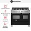Комбинированный варочный центр Bertazzoni MAS106L2ENET в матовом черном цвете оснащен газовой варочной поверхностью и двойным электрическим духовым шкафом. Газовая панель из нержавеющей стали оборудована 6 конфорками, две из которых имеют два контура. WOK конфорка предназначена для ускоренного разогрева, использования посуды с круглым дном и приготовления блюд в азиатском стиле. Для удобства предусмотрен электроподжиг.
