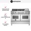 Устройства с тремя духовками также имеют один основной и две дополнительных шкафа разного объема: например, плиты Bertazzoni оснащены большой духовкой объемом 69 литров, средней объемом 54 литра и малой объемом 24 литра. Духовки располагаются в два ряда: две меньшие духовки в одном ряду, большая и ящик для посуды в другом.