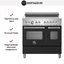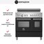 Устройства с тремя духовками также имеют один основной и две дополнительных шкафа разного объема: например, плиты Bertazzoni оснащены большой духовкой объемом 69 литров, средней объемом 54 литра и малой объемом 24 литра. Духовки располагаются в два ряда: две меньшие духовки в одном ряду, большая и ящик для посуды в другом.
