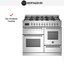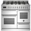 Устройства с тремя духовками также имеют один основной и две дополнительных шкафа разного объема: например, плиты Bertazzoni оснащены большой духовкой объемом 69 литров, средней объемом 54 литра и малой объемом 24 литра. Духовки располагаются в два ряда: две меньшие духовки в одном ряду, большая и ящик для посуды в другом.