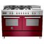 Варочный центр Bertazzoni PPRO1206GMFEDVIT относится к серии Professional. Модель шириной 120 см в корпусе бордового цвета позволяет готовить на газовой варочной панели с 6 конфорками и поверхностью для жарки Теппан-яки, а также в двух электрических духовках одинакового объема. Регулировка мощности производится при помощи поворотных переключателей, для выбора функций служит большой сенсорный дисплей. Под духовками размещается плавно закрывающийся выдвижной ящик для посуды. Духовки объемом по 69 литров имеют откидную дверцу с амортизаторами и тройным съемным стеклом. Каждая духовка оборудована электрогрилем и конвекцией. Варочная поверхность изготовлена из нержавеющей стали, а решетки для посуды — из чугуна. Для включения конфорок используется электроподжиг, для защиты от утечек — функция «газ-контроль».