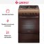 Модель выполнена в тёплом коричневом оттенке, который легко вписывается в домашние интерьеры от классики до ретро. Передняя панель и варочная поверхность покрыты эмалированным металлом, что делает поверхность стойкой к высоким температурам и простой в уходе. Высота 85 см, ширина 50 см и глубина 58,5 см соответствуют стандартным нишам, поэтому установка в кухонный гарнитур проходит без сложностей. Электрическое подключение обеспечивает ровный нагрев конфорок и духового шкафа, а класс энергопотребления A помогает сократить расходы на электроэнергию.
