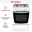 Духовой шкаф газового типа объемом 63 литра оснащен откидной дверцей с двойным стеклом, что снижает теплопотери и делает эксплуатацию безопаснее. Внутренняя эмаль облегчает удаление жира при традиционной очистке, а лампа внутри камеры позволяет контролировать процесс без открытия дверцы. Наличие газ-контроля духовки и конфорок обеспечивает автоматическое прекращение подачи газа при затухании пламени, что повышает безопасность в быту.