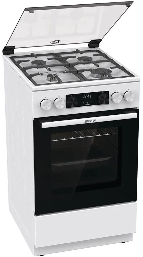 Газовая плита Gorenje GGI5C22WF — отличный выбор как для квартиры, так и для частного дома. Цвет корпуса белый, он гармонично сочетается с мебелью и техникой похожих оттенков, а также может интересно выглядеть на контрасте с ними. Для управления используется удобная и понятная электронная система. Благодаря ей выбирать режимы приготовления и настраивать параметры температуры очень просто. Основная информация о процессе отображается на дисплее. Переключатели не только выполняют техническую функцию, но и поддерживают общий дизайн; тип элементов: сенсорные + поворотные.