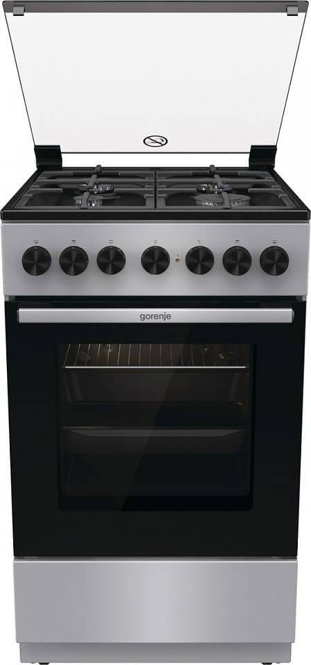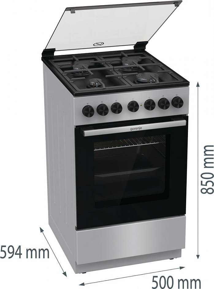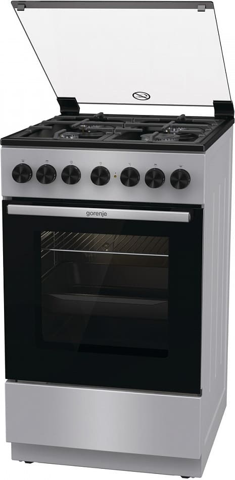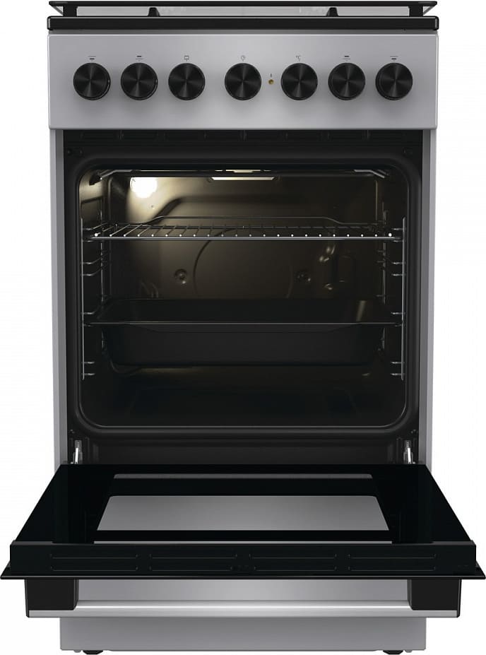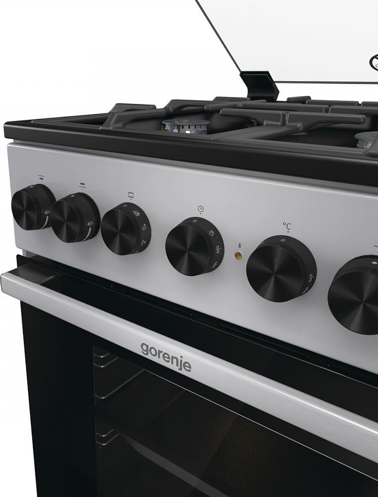 Комбинированная плита Gorenje GK5B44SF — отличный выбор как для квартиры, так и для частного дома. Цвет корпуса серебристый, он гармонично сочетается с мебелью и техникой похожих оттенков, а также может интересно выглядеть на контрасте с ними. Для управления используется удобная и понятная механическая система. Благодаря ей выбирать режимы приготовления и настраивать параметры температуры очень просто. Переключатели не только выполняют техническую функцию, но и поддерживают общий дизайн; тип элементов: поворотные.